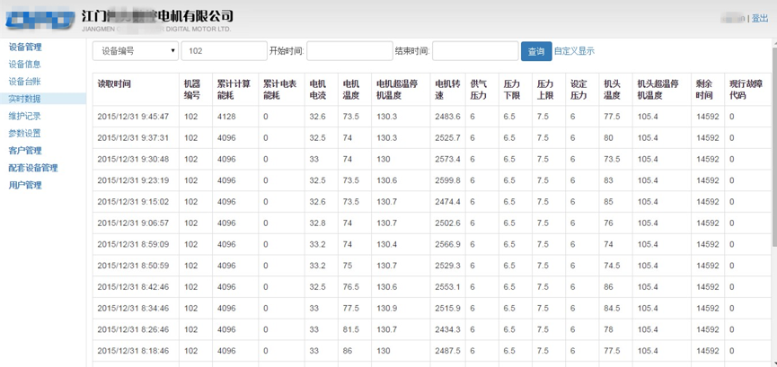 針對(duì)單個(gè)空氣壓縮機(jī)的設(shè)備維護(hù)信息也會(huì)進(jìn)行記錄,這包括了所有與服務(wù)相關(guān)的設(shè)備數(shù)據(jù),例如過濾器、分離器以及流量的變化情況。這有利于更方便地制定對(duì)空氣壓縮機(jī)的清洗三濾和換壓縮機(jī)油的維護(hù)計(jì)劃;例如空壓機(jī)的設(shè)備臺(tái)賬信息(包括機(jī)頭、主電機(jī)、輔機(jī)的參數(shù)和廠家等)和維修記錄(安裝時(shí)間、故障狀態(tài)記錄、維修過程記錄等)信息。